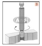 7、 取鋼絲螺套:在安裝過程中出現(xiàn)問題或者由于鋼絲螺套使用時間過久需要取出絲套,應當使用帶有刃的卸套工具對準螺套端口,用榔頭猛打一下,用手加力按下手柄反螺紋旋轉(zhuǎn)即可退出鋼絲螺套。