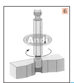 5、沖斷安裝柄 通孔時,要將絲套安裝柄沖斷,一般用沖斷器對準安裝柄,用200g左右的榔頭猛擊一下即可去除,對于18×2.5以上的粗牙絲套和14×1.25以上的細牙絲套,用尖嘴鉗上下彎曲安裝柄就可去除。